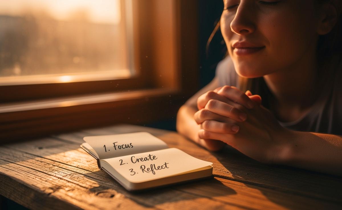 - 📝 Mentale Klärung: Das Notieren der drei wichtigsten Aufgaben des Tages reduziert die kognitive Last und setzt einen klaren mentalen Fokus.